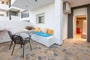 Executive rooms (40 square meters) consist of three single beds or altrenatively one king and one single bed. For extra adult/child and total capacity of 4 in this room we are placing an extra bed. All of Executive rooms on the ground floor have a furnished terrace.